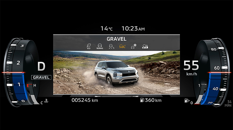 A high resolution widescreen 12.3 inch full digital driver displayO11 continuously updates the status of your Outlander and can be customised to showcase navigation, Super-All Wheel ControlO9 information, audio entertainment options, and many more important details.